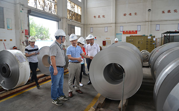 2016118日,富士康科技集團采購部詹部長一行來我廠進行參觀指導工作。詳細了解了我們公司的生產現狀和未來規劃,辛總和相關的技術人員陪同詹部長等人到生產車間了解我們的鋼帶原材,參觀了我們的4輥軋機,20輥軋機、拉矯機的生產過程。